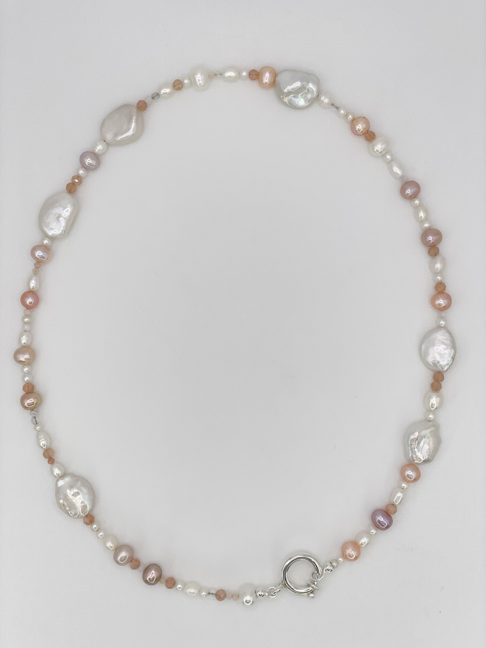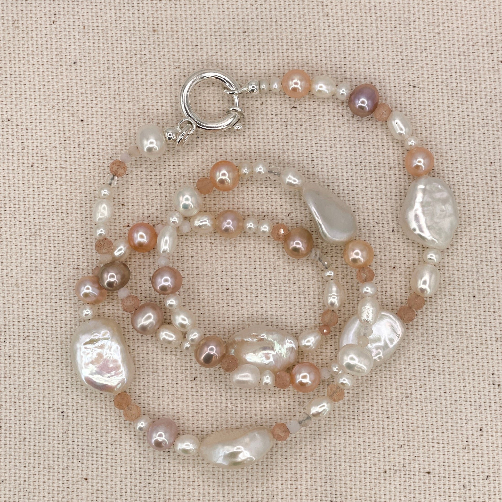 In dieser Kette verwendete Edelsteine: verschiedene Perlen und Mondstein